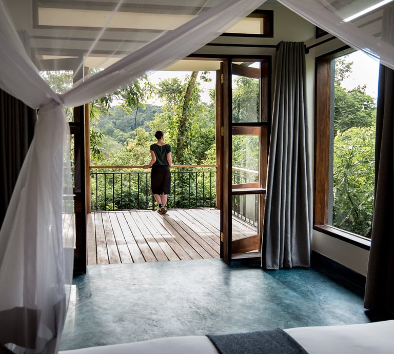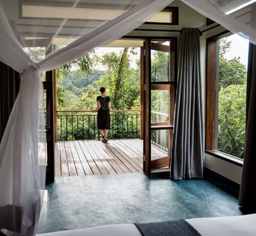 Je verblijft in Turaco Treetops. Elke deelnemer krijgt een eigen privé cottage, omringd door natuur. Comfortabel, verzorgd en met alle rust om je proces te ondersteunen. We kiezen voor kwaliteit — niet als luxe, maar als bedding voor echte aandacht.