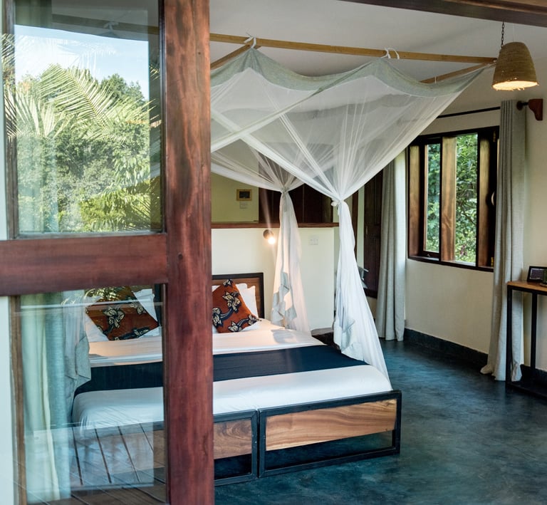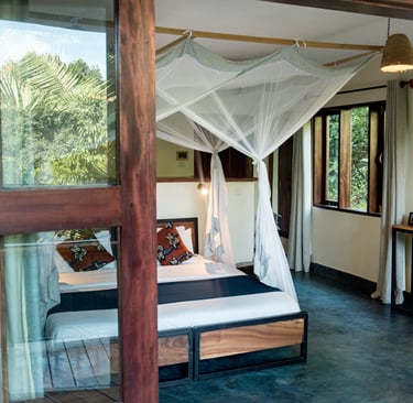 Omdat afstand en natuur helpen om echt los te komen van je dagelijkse ritme. Kibale Forest is rauw, levend, stil en puur. De omgeving doet iets met je systeem — het nodigt uit tot vertragen, voelen en herijken. We kiezen bewust voor een plek die niet comfortabel oogt, maar essentie blootlegt.