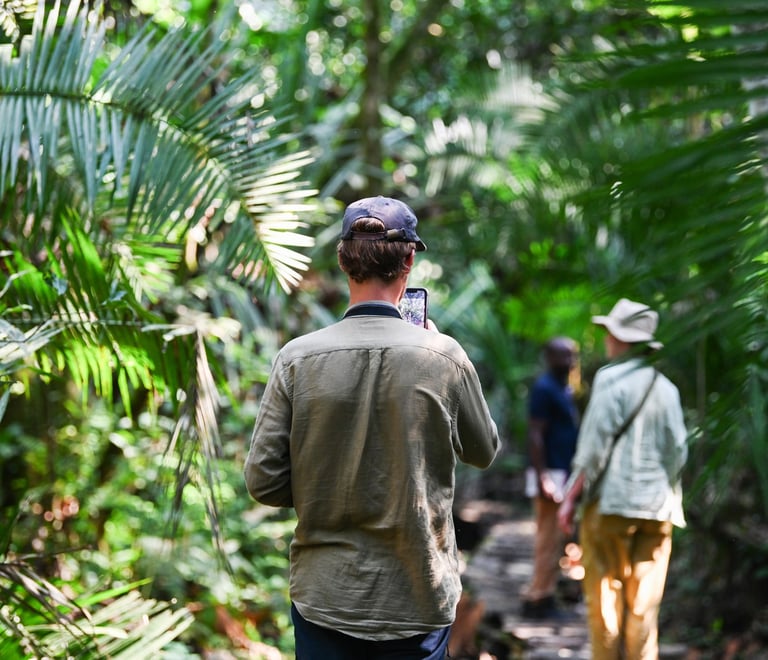 Ervaringen in de natuur en lokale context — zoals chimpansee tracking, jungle walks en community visits — die spiegelen, verbinden en je blik verruimen.